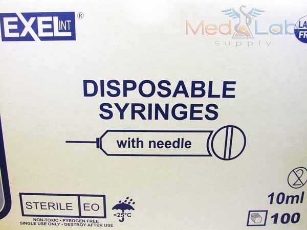 Exel, 26255, Luer Lock Syringe with Needle: 10cc, 20 Gauge by 1.5 inch length needle.
