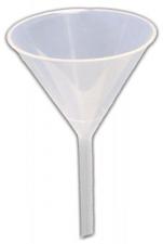 These clear funnels have long stems, smooth walls and external ribs to prevent air lock. Molded in polypropylene. Autoclavable. Plastic 67 mm diameter. 1.5 oz. capacity, 65mm stem length.